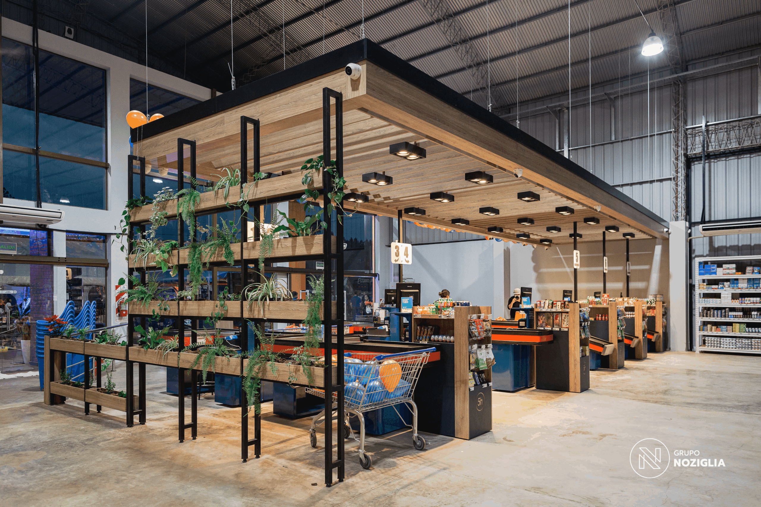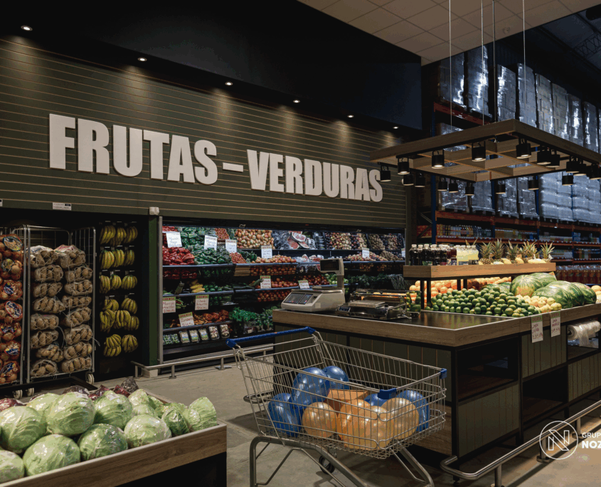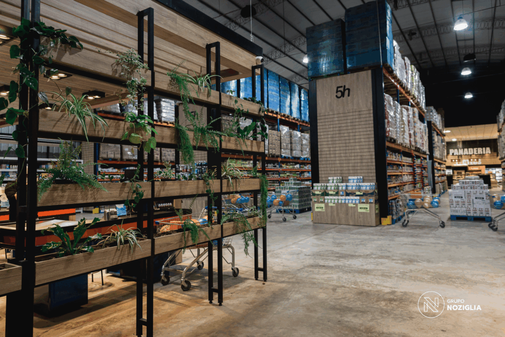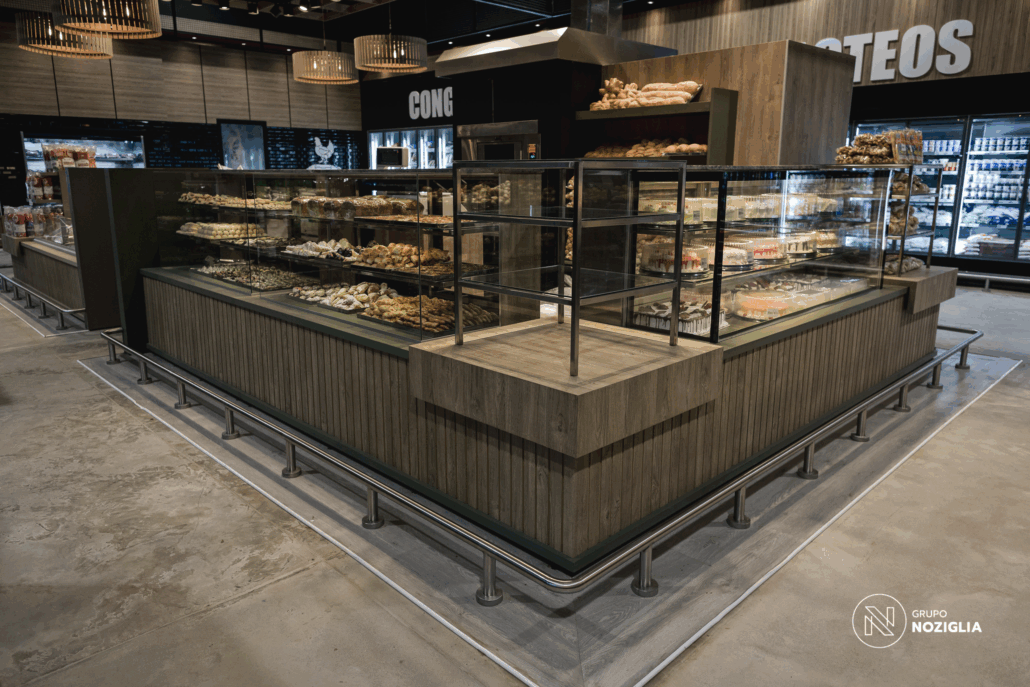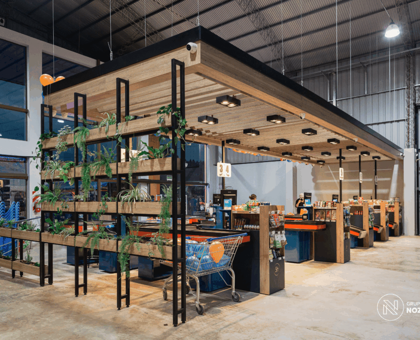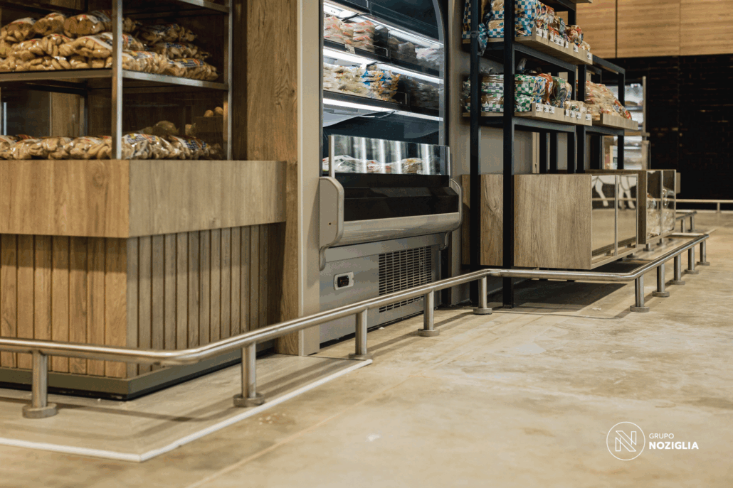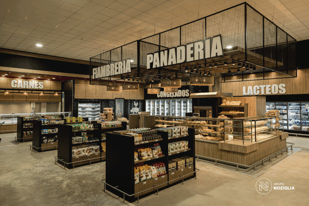 Este proyecto que realizamos para 5 Hermanos Supermercados . Desarrollamos el diseño arquitectónico, la fabricación de mobiliario personalizado en conjunto con NOZÁ Fábrica de Mobiliario, la instalación de revestimientos junto a TEKÓ Placas y Herrajes, el equipamiento y el armado de racks de almacenamiento con la ayuda de Noziglia Equipamientos; para el nuevo local de 5 Hermanos. También se replicó el mobiliario personalizado para otros locales de la línea de supermercados con el fin de mantener una imagen de marca consistente.
