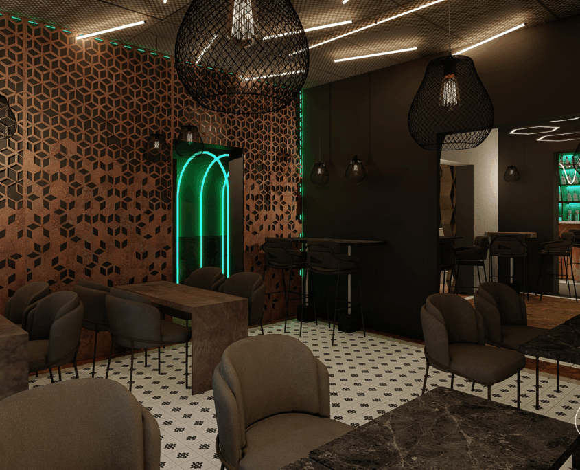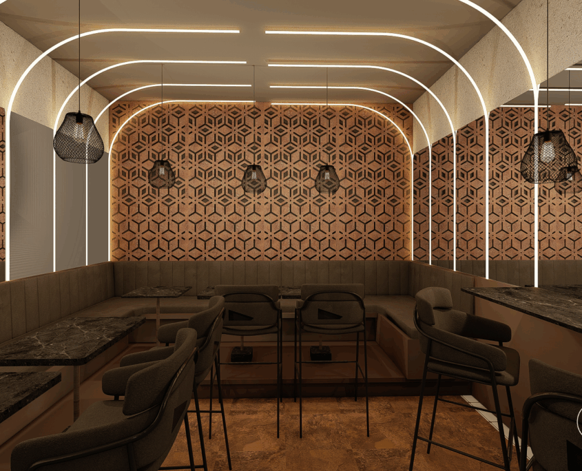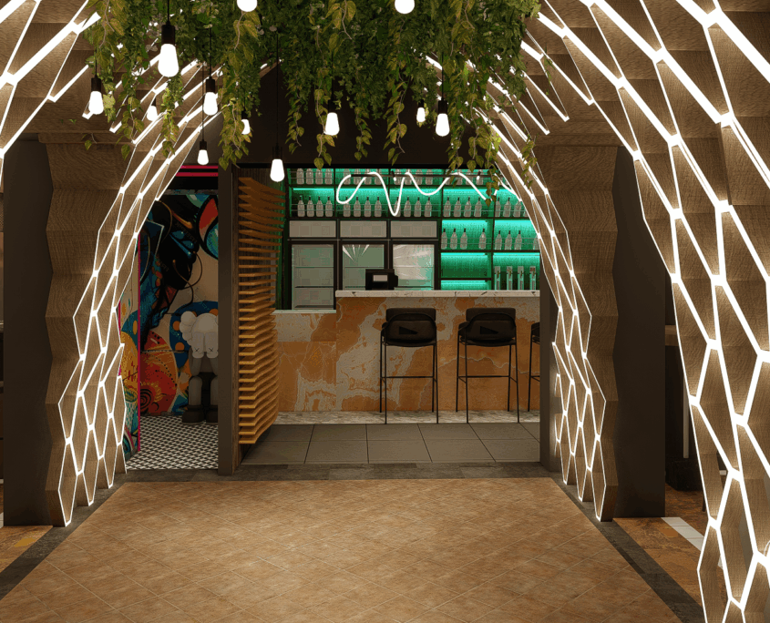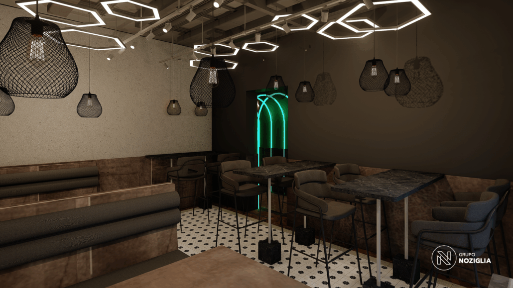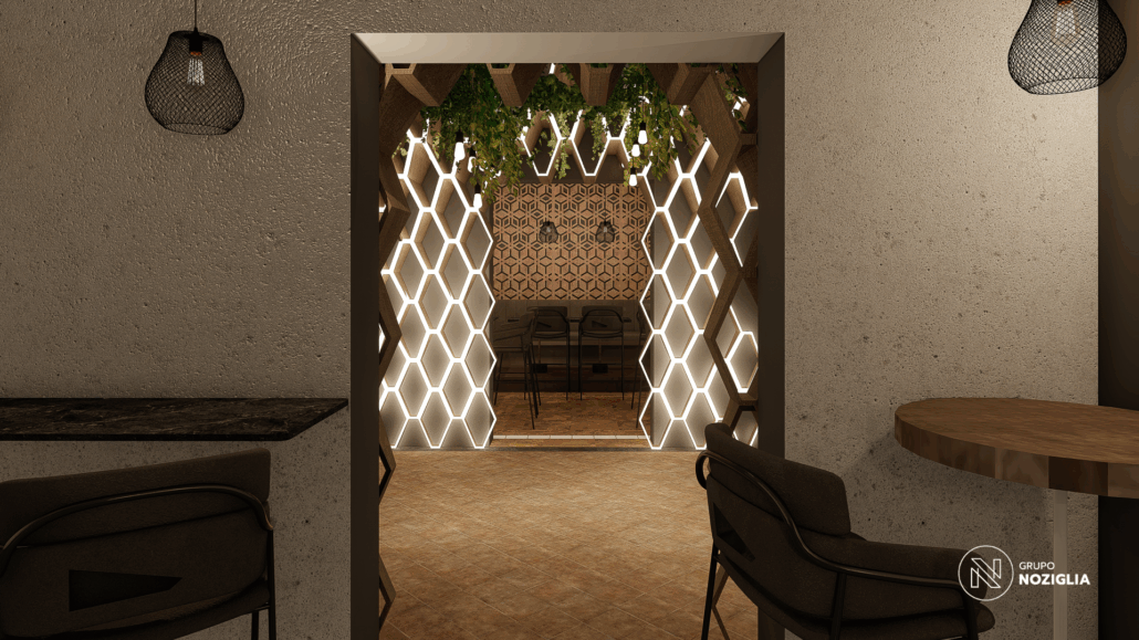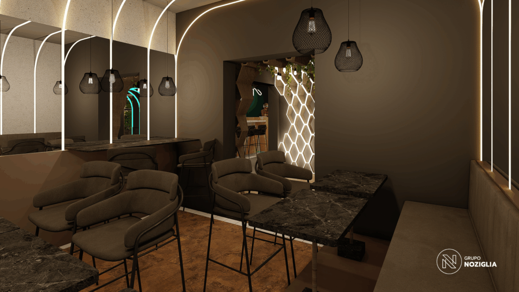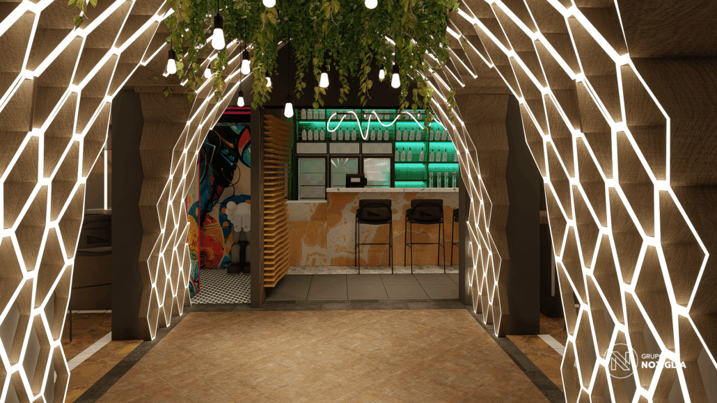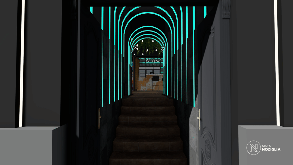 El bar está diseñado como una suerte de portal. Al ingresar, se produce un quiebre: del exterior cotidiano a un universo sensorial intenso y envolvente.