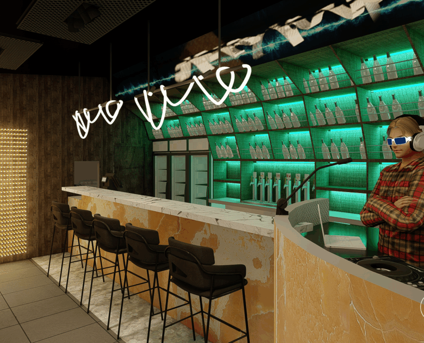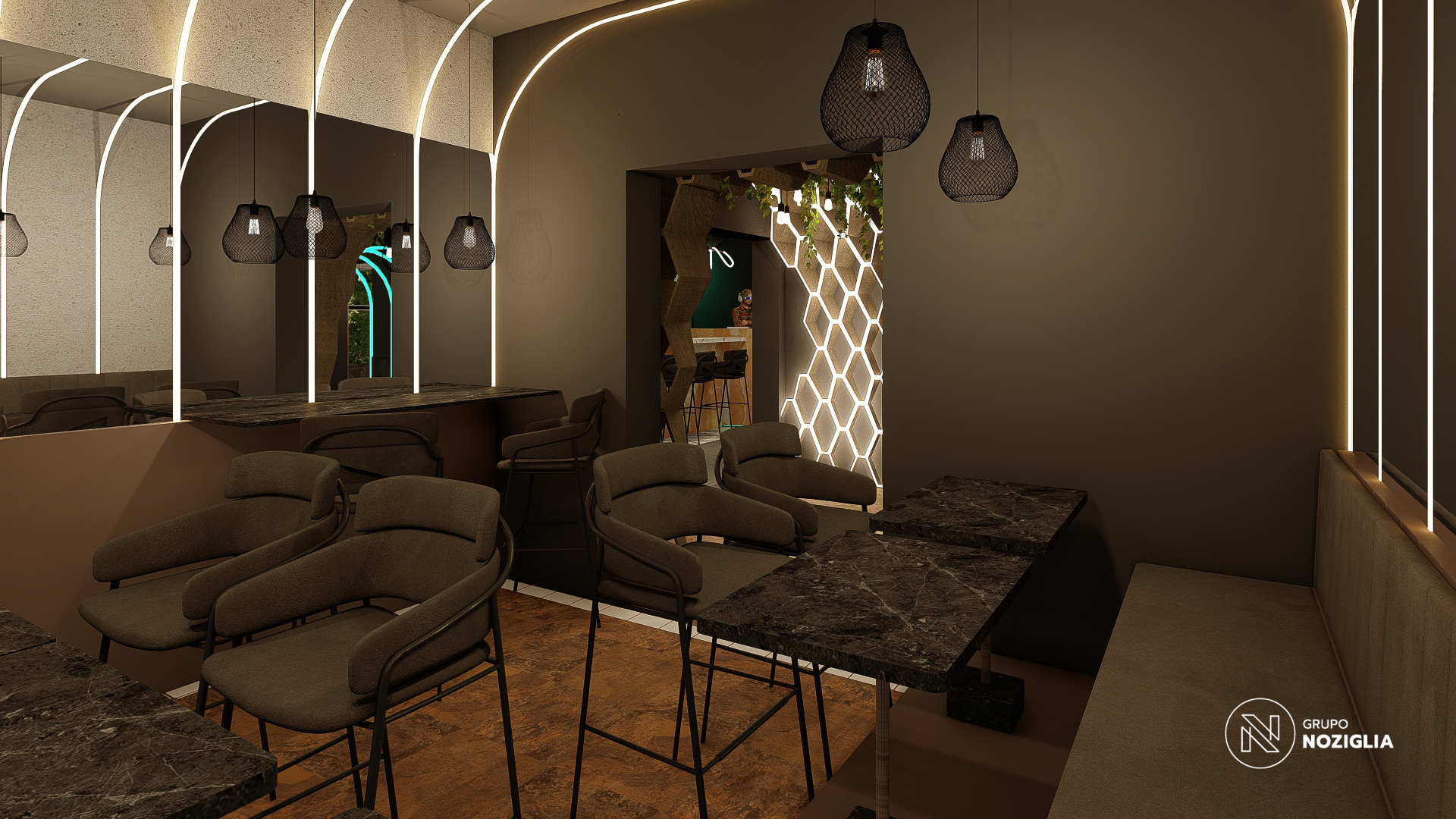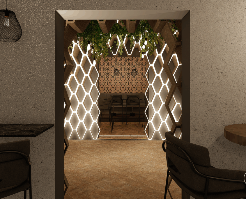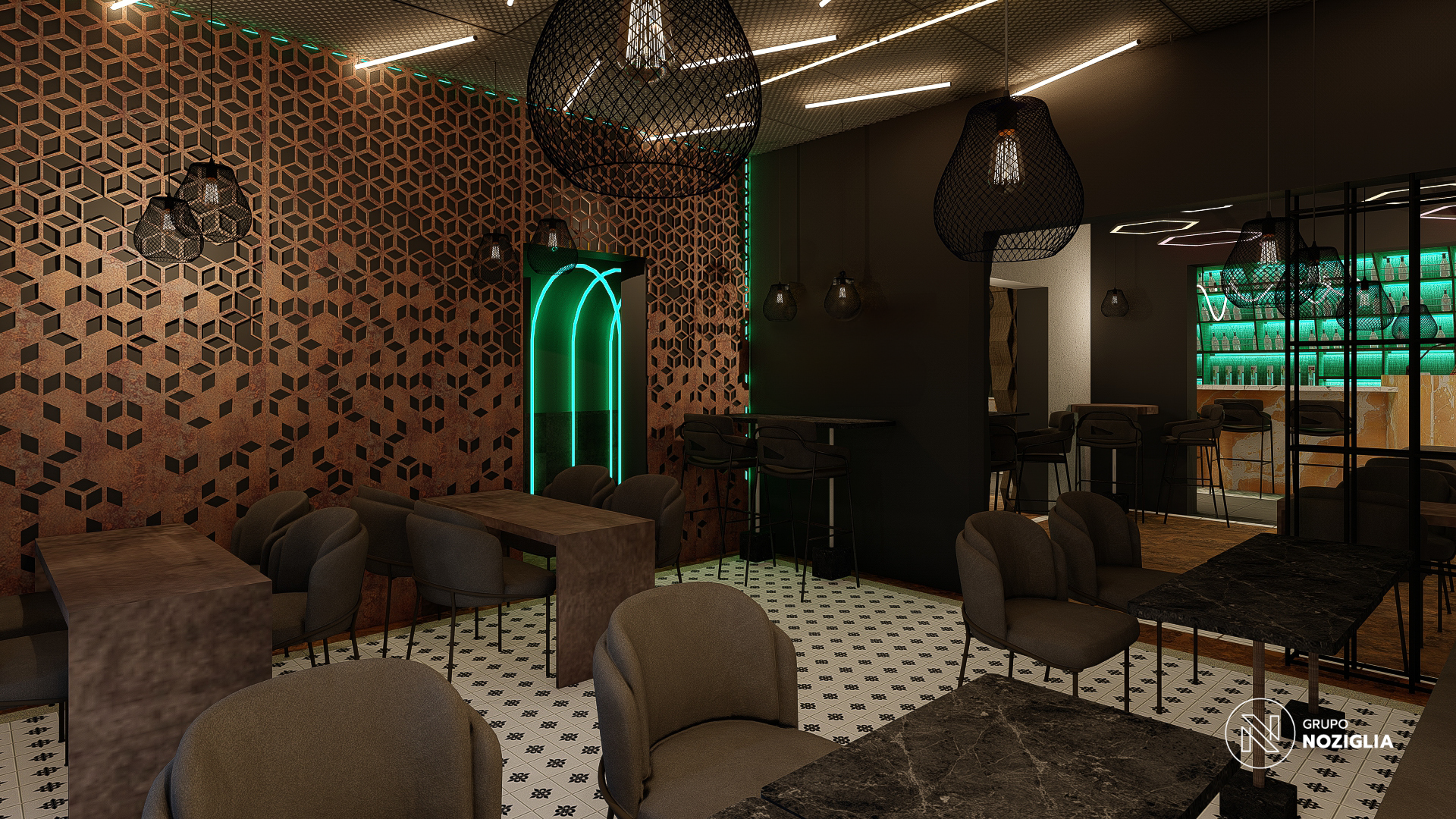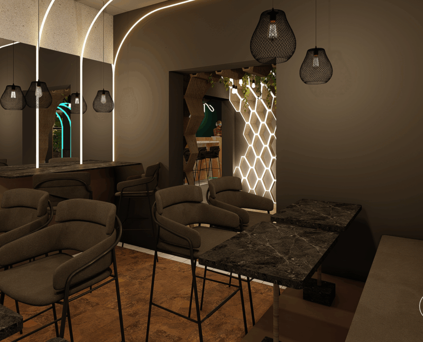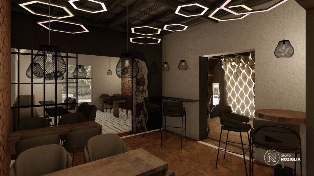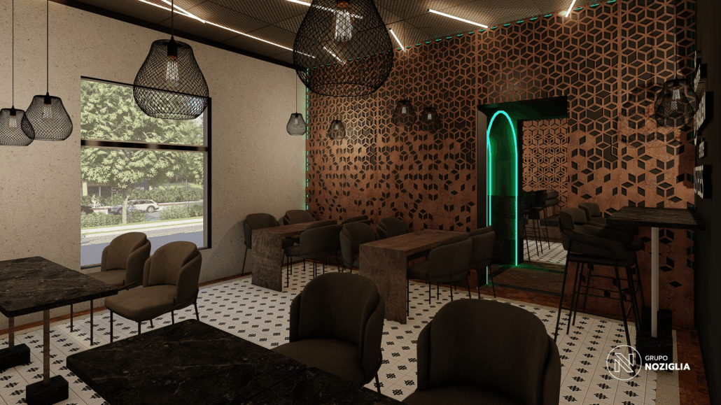 El bar está diseñado como una suerte de portal. Al ingresar, se produce un quiebre: del exterior cotidiano a un universo sensorial intenso y envolvente.