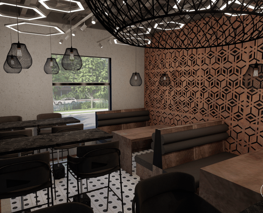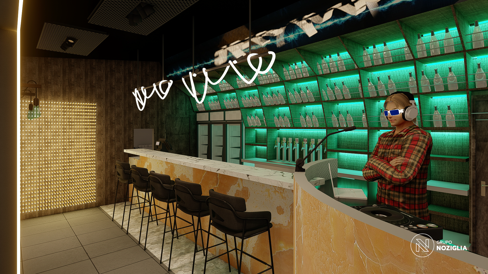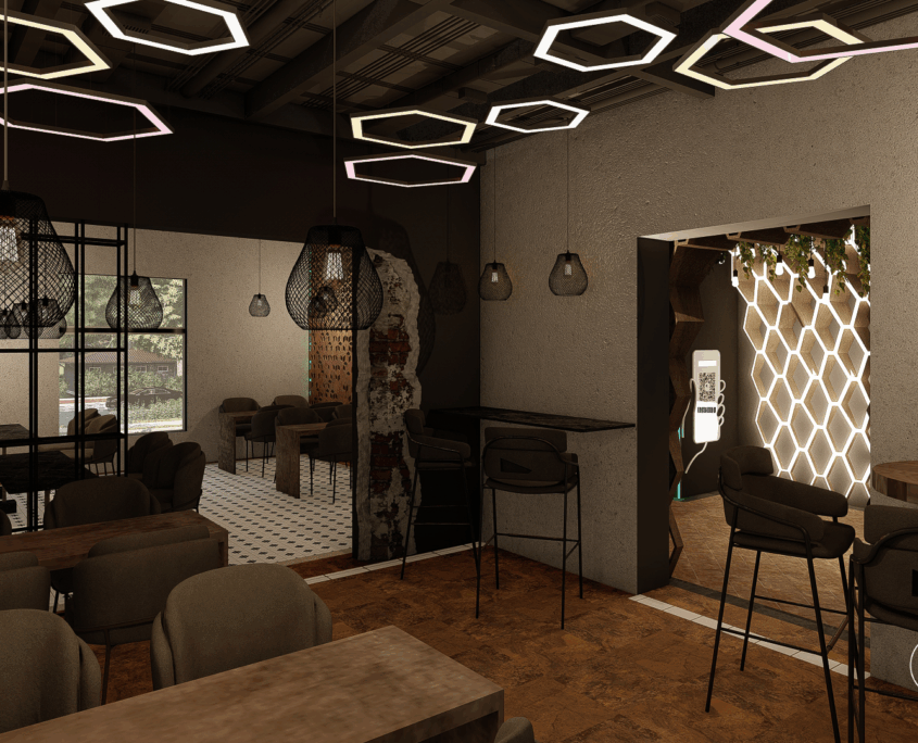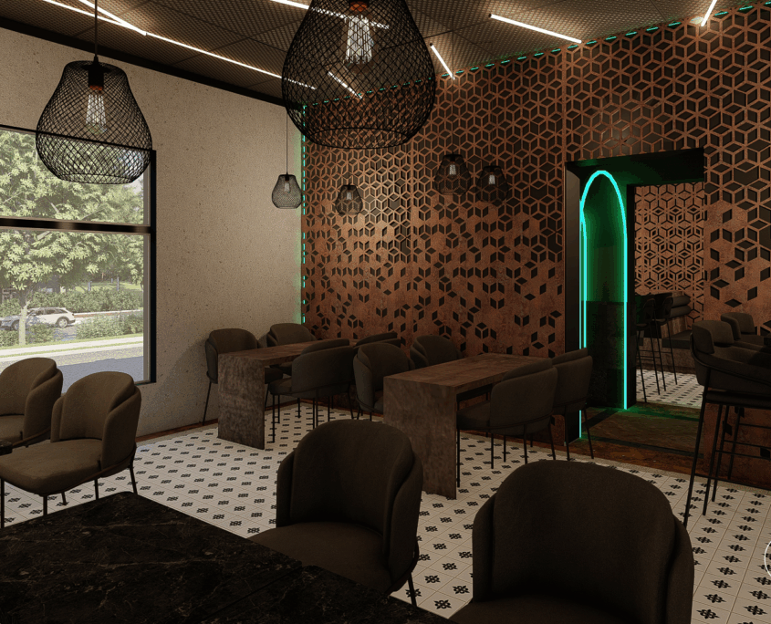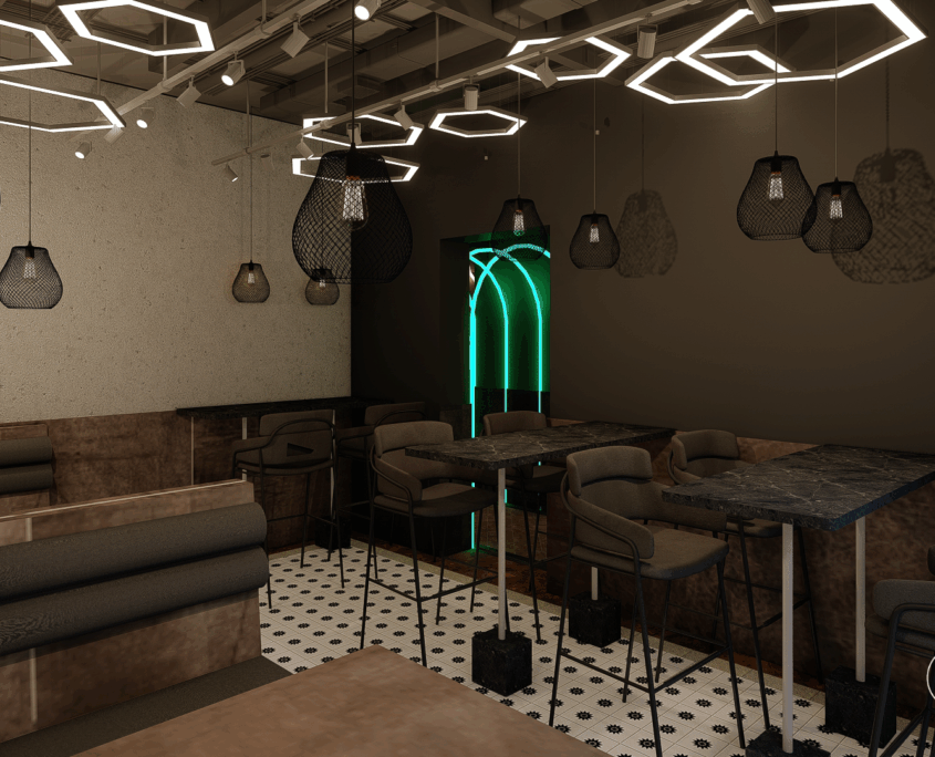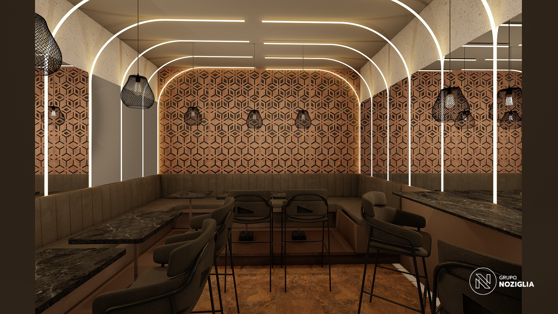 El bar está diseñado como una suerte de portal. Al ingresar, se produce un quiebre: del exterior cotidiano a un universo sensorial intenso y envolvente.