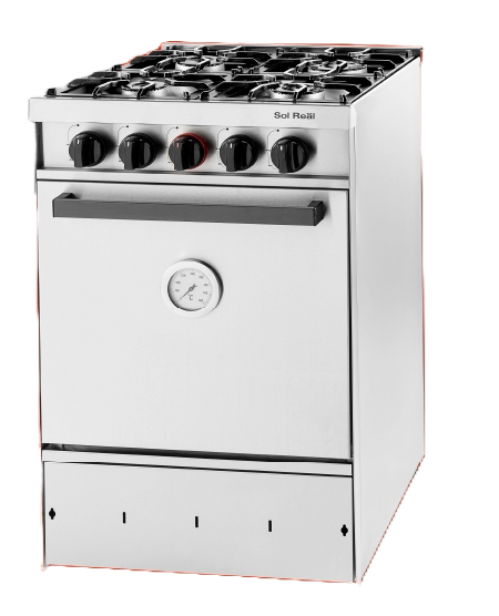 * Interior de horno enlozado con piso de tejuelas refractarias.