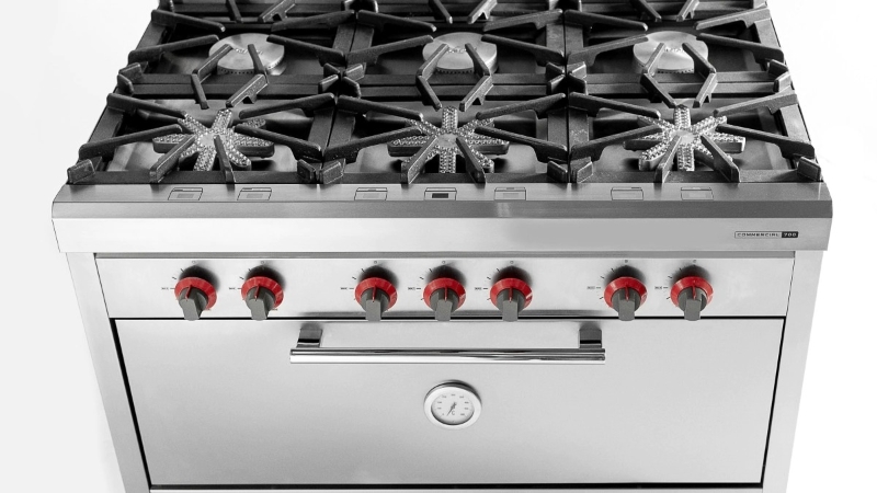 *con manija cromada, bisagras embutidas y pirómetro analógico.