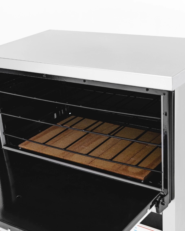 *Cámara de cocción enlozada con piso de tejuelas refractarias.